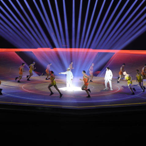 The artistic director’s vision was to fuse outstanding human performances with choreography, lights, costumes, special effects, originally composed music, with an international and local cast of martial arts specialists and acrobatic performers: the result has been a truly poetic and at the same time energizing show that was hugely enjoyed by the public and by the athletes.